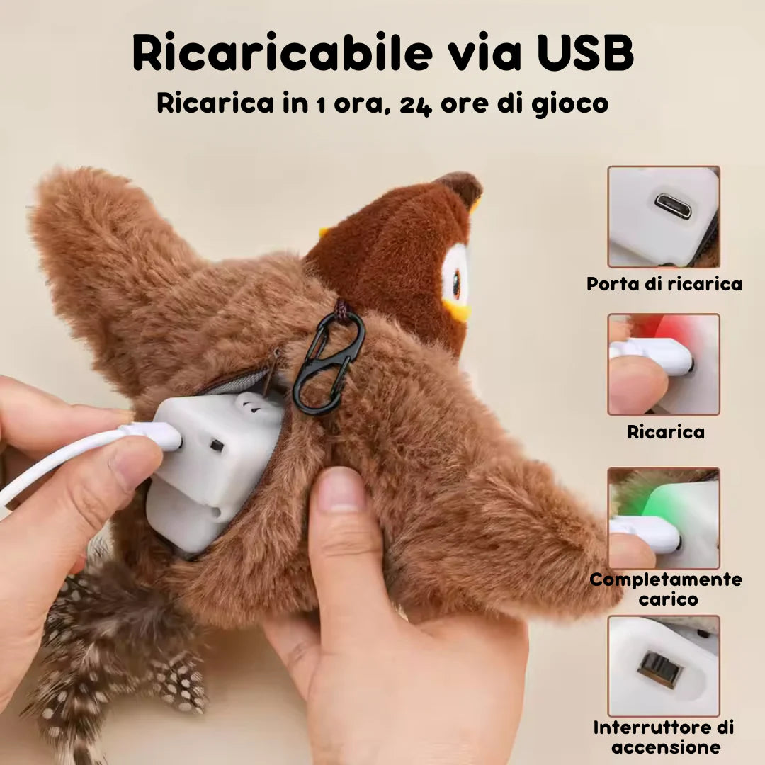 Si attiva con il tocco del tuo gatto, sbattendo le ali e cinguettando per mantenerlo coinvolto e diverito